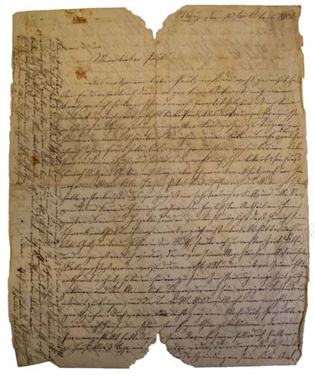 Conforme pude ler em tua amável carta, que muito me alegrou, também te correspondes com teus queridos parentes em Ijuí e, assim, deve ser de teu conhecimento que a esposa de Heinrich Metzens faleceu após uma doença curta, mas muito grave, depois de ter ainda dado vida a um pequeno, adorável menino, Eitel Friedrich Heinrich. Este (a morte) foi com certeza um fato muito triste, e todos os parentes e amigos de Heinrich partilham com ele, sinceramente condoídos, a sua dor pela perda, e, possivelmente, Heinrich não teria sobrevivido à sua grave doença.