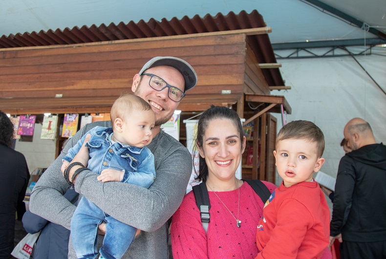 A tarde ensolarada dessa segunda-feira, 5, levou para a Feira do Livro Juliane e Fábio Goulart e os filhos Conrado, de 4 meses, e Boreano, de 2 anos. Mesmo com a pouca idade dos meninos, Fábio contou que gosta de incentivar o acesso aos livros desde cedo. “Viemos passear para procurar livros, não tanto para o Conrado, mais para o Boreano, que já gosta de olhar de tudo que tem animais, da Peppa Pig. Até livro que não tem desenho, se a gente lê, ele presta atenção”, afirmou o pai.