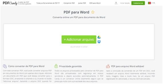 O PDF Candy é outra boa opção entre as ferramentas para converter PDF para Word, com recursos que podem ser feitos pela plataforma online.