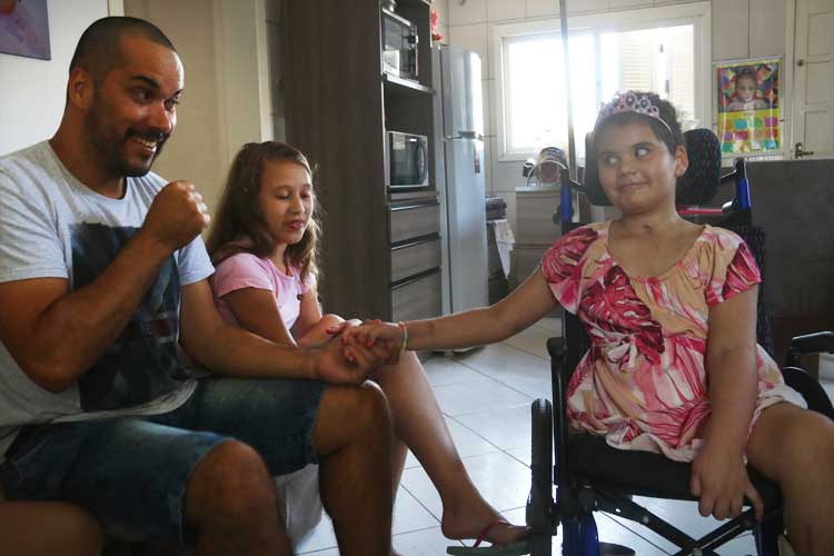 Diogo – Eu me dedico a ela 100%. Eu pedi a Deus para a Júlia ficar. Hoje não tenho como trabalhar porque ela precisa de um amparo. Ela toma medicamentos às 8 ,12, 15, 16, 18 e 20 horas, e à meia-noite. Além disso, tem a sonda, que temos que trocar três vezes ao dia.