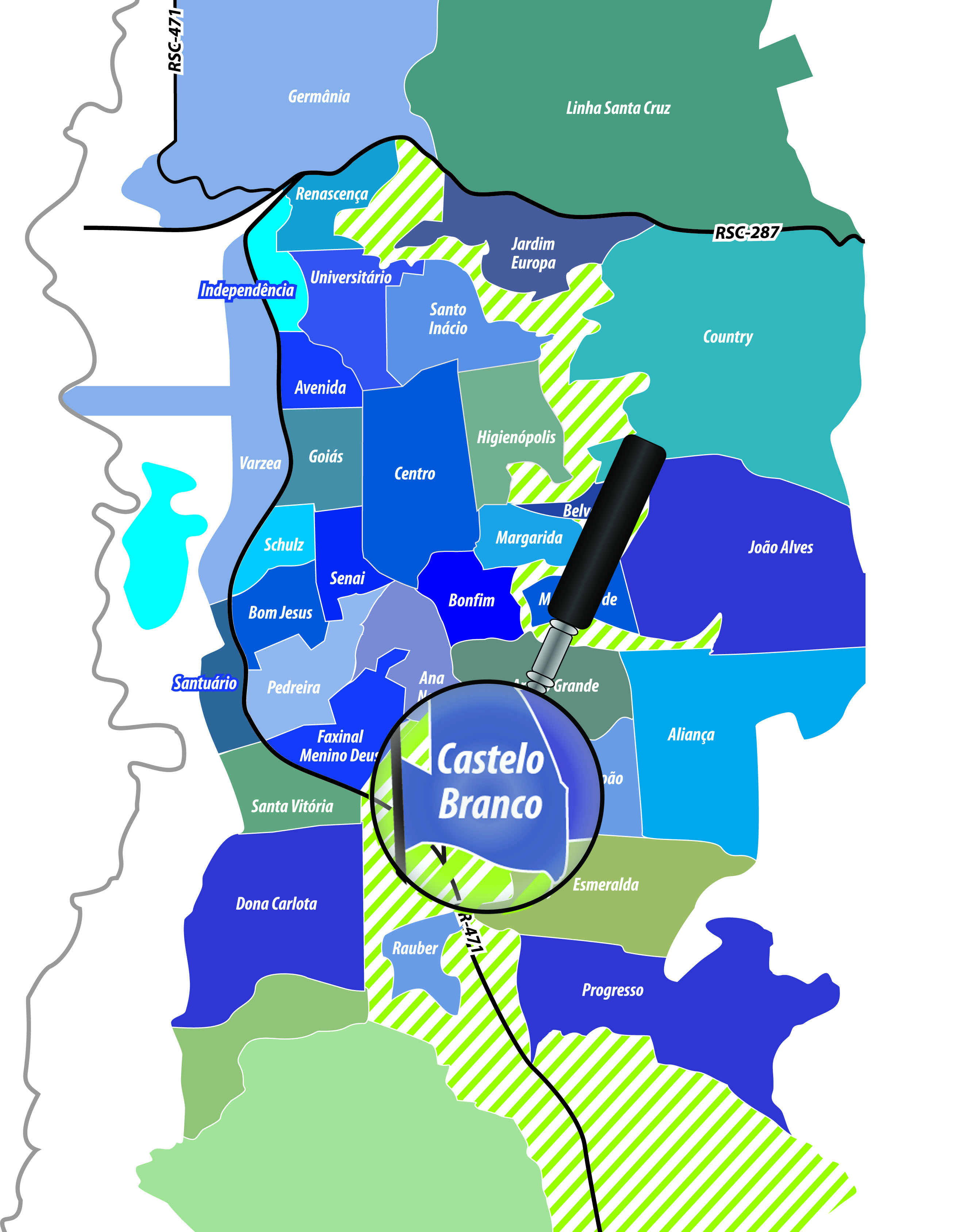 Com 15 anos de existência, o Bairro Castelo Branco está em crescimento desde 2009, ano de sua criação. Antes, a região pertencia ao Bairro Santo Antônio e ao antigo Bairro Vila Nova. Está localizado na Zona Sul de Santa Cruz do Sul, entre as avenidas Presidente Castelo Branco e Deputado Euclydes Nicolau Kliemann.