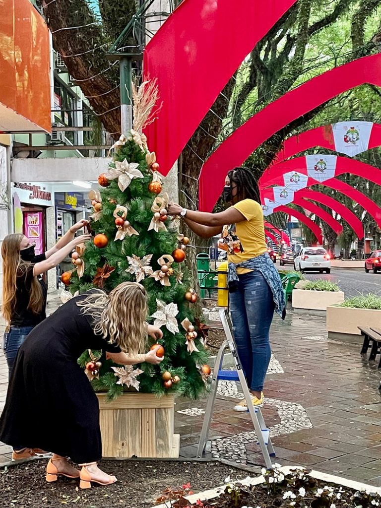 A chuva impediu a realização da solenidade de abertura na sexta-feira, 26, mas não tirou o brilho do Dia Tannenbaumfest (Festa dos Pinheiros). A atividade com a participação dos empresários do comércio, especialmente da Marechal Floriano entre as quadras da Rua Senador Pinheiro Machado e Tiradentes. Os lojistas foram os responsáveis pela decoração de 50 pinheiros, que complementam a decoração natalina do centro da cidade.