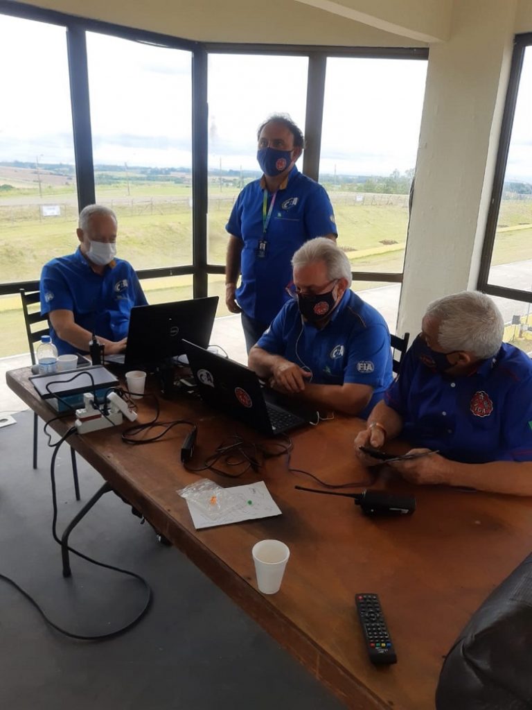 Encontrei lá pelo autódromo a equipe da Torre de Controle da Confederação Brasileira de Automobilismo (CBA), que controla tudo o que acontece: contagem de voltas, julgamento de questões durante a prova, entrada e saída de safety car, bem como penalizações. Estão no foto: Carlos Strey, Jhonny Bonilla, Mirnei Piroca e Antonio Gomes. Eles estão sempre de olho em tudo na prova.