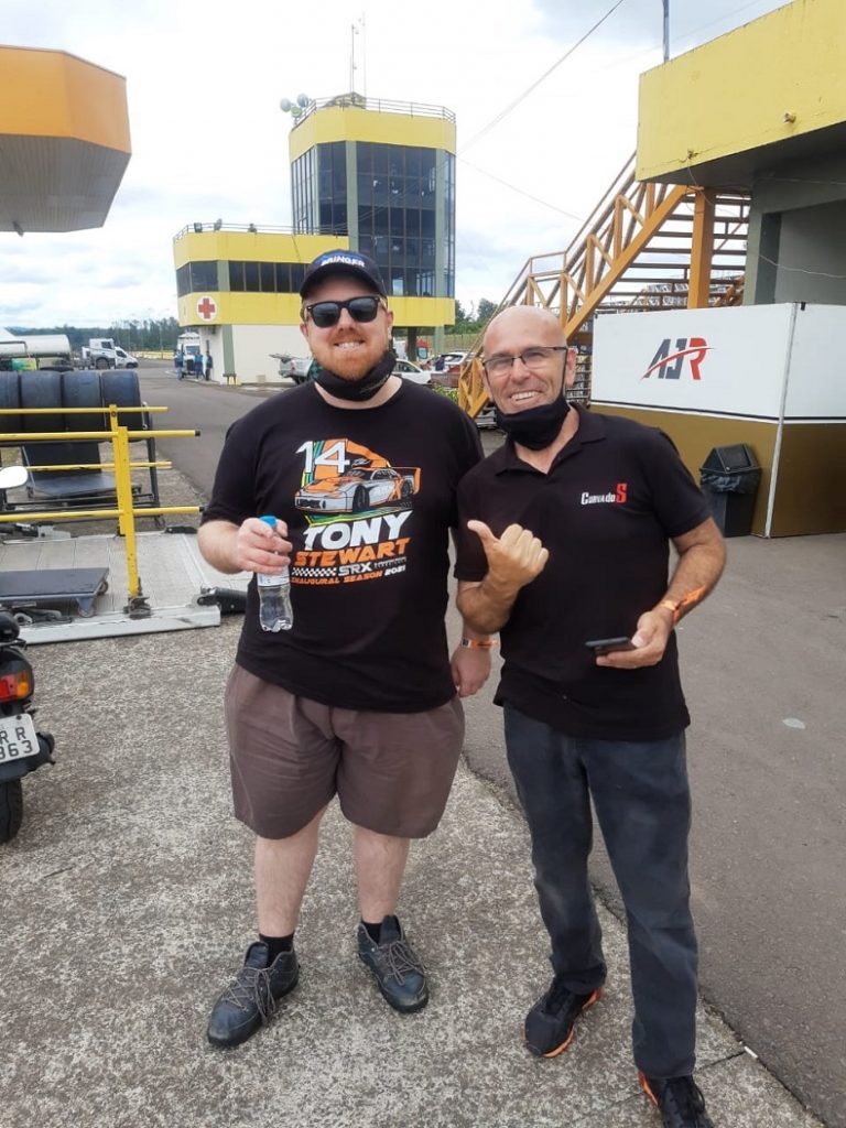 Um dos pilotos santa-cruzenses mais respeitados em qualquer lugar ou equipe por onde atuou está buscando recursos a fim de logo voltar para alguma das principais categorias do Brasil. Quem sabe na Império Endurance em 2022? Estamos na torcida! Vamos lá incentivar esse jovem talento, empresários! Santa Cruz merece ter este grande piloto de volta. Trata-se de Rafael Iserhardt, à esquerda, ao lado do mecânico automotivo CEO da ServCar em Santa Cruz, Amaro Severo, o Cobrinha.