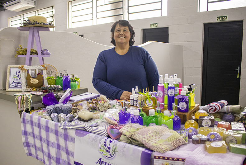O Recanto de Aromas do Monte também chamou a atenção dos visitantes. Localizado em Linha Brasil, em Monte Alverne, produz lavanda, alecrim e capim limão, utilizado para fazer produtos aromáticos. Para uma das proprietárias, Laura Sabina Siebenchler Raths, a feira permite que eles possam não só mostrar os produtos feitos na propriedade, mas também convidar os clientes a conhecer o empreendimento, que conta com café colonial e espaço para ensaios fotográficos. “Pretendemos continuar vindo todos os meses”, garantiu.