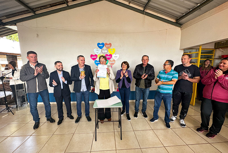 A Escola Municipal de Educação Infantil (Emei) Monte Alverne, no Distrito de Monte Alverne, está prestes a receber importantes melhorias. No pavilhão do educandário, a prefeita de Santa Cruz do Sul, Helena Hermany, assinou, na manhã deste sábado, 8, o termo para o início das obras de reforma e ampliação da instituição. O ato contou com a presença de integrantes do governo, servidores da escola, pessoas da comunidade, alunos e seus pais.