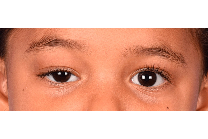 - a pálpebra de cima cubra mais do que os dois milímetros superiores da parte colorida do olho;