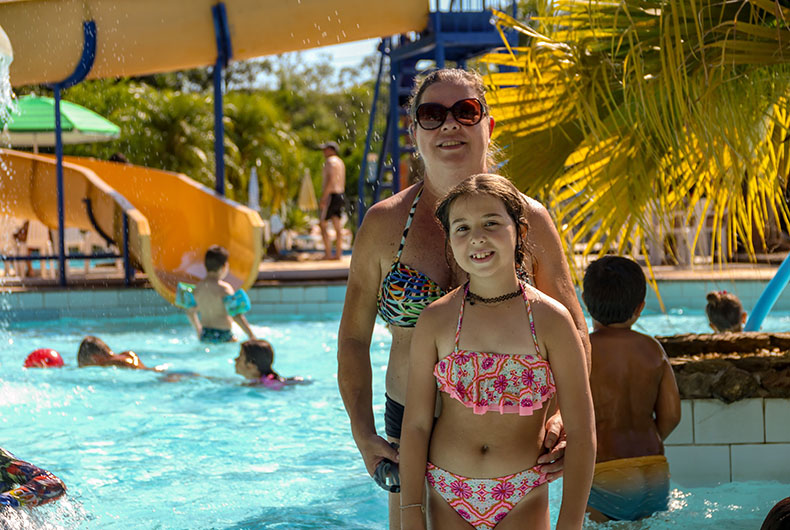 Sócias há três anos, Cátia Dornelles da Silva, de 48 anos, e a filha Antônia Juhlich, de 8, aproveitaram o calor da tarde de sexta-feira, nas piscinas do Clube Aliança. Elas contam que, durante as férias, frequentam o local todos os dias. “Eu gosto de brincar com minhas amigas; algumas são da escola, outras são amigas da família e também tenho amigas que fiz aqui”, diz a menina.