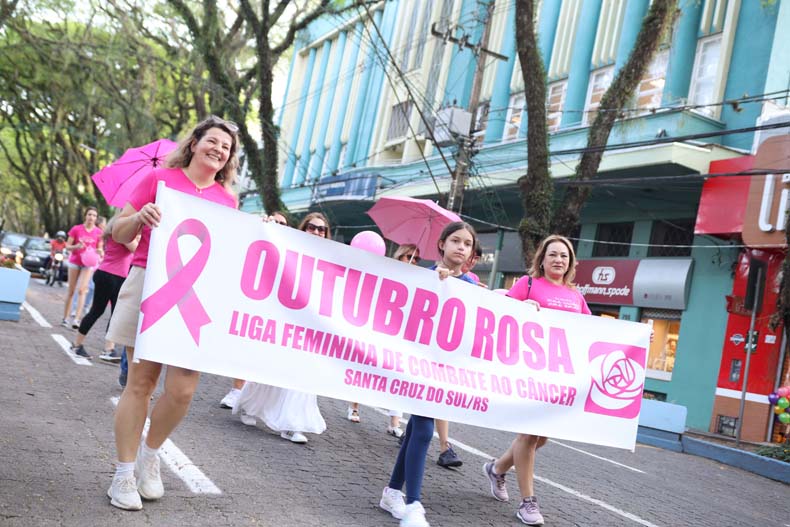 O Outubro Rosa esteve em evidência na Rua Marechal Floriano, no centro de Santa Cruz do Sul, durante a tarde dessa quarta-feira, 30, para reforçar a luta contra o câncer de mama e o câncer do colo do útero. A cor da campanha preencheu o Túnel Verde e chamou a atenção de comerciantes e pedestres, que aplaudiram a iniciativa.