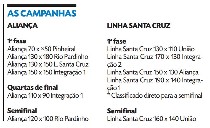 LEIA TAMBÉM: Linha Santa Cruz vence e segue na liderança da Copa Cultural Lifasc