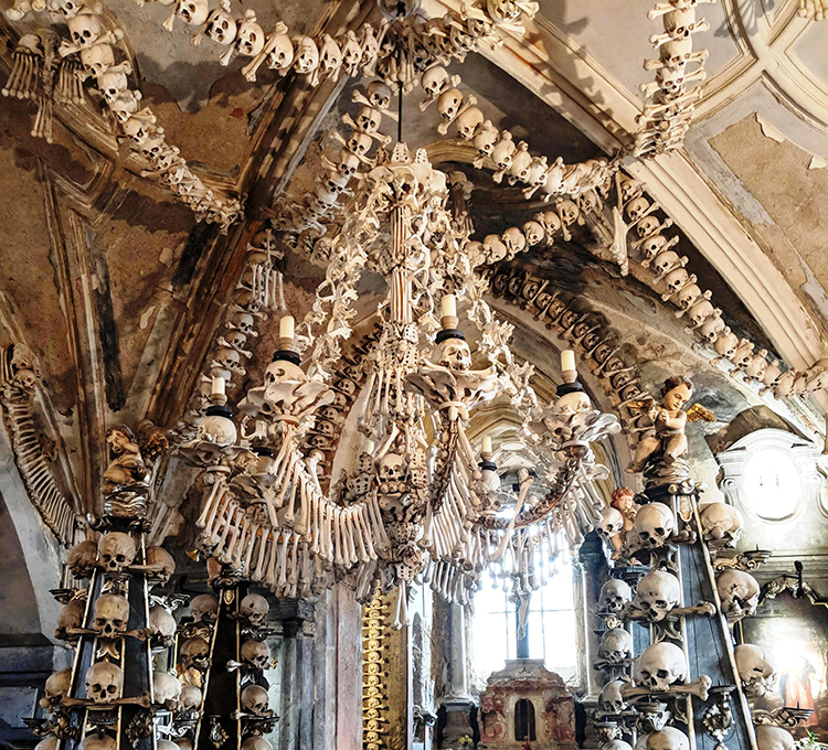 Em 1870, Frantisek Rint, um artista local, foi convocado para vasculhar e organizar o ossuário, e o resultado, fruto de anos de trabalho, é impressionante. Rint criou obras de arte que incluem candelabros, painéis, paredes cobertas com caveiras e decorações feitas com ossos por toda a capela. Apesar de macabro, o local nos leva fatalmente a reconhecer nossa breve e insignificante existência material.