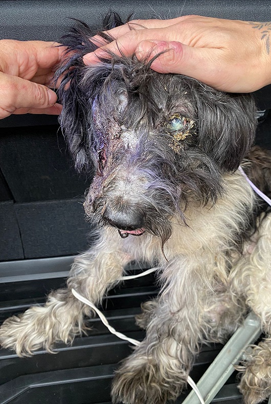 Uma situação de maus-tratos foi identificada em Santa Cruz do Sul no começo desta semana. Protetoras independentes da cidade receberam a denúncia de que Pirata, como agora é chamado, estava gravemente ferido. Ele não estava abandonado, no entanto. O resgate foi feito em ação conjunta com a Polícia Civil, em função da gravidade da situação, na segunda-feira, 18, na casa da tutora.