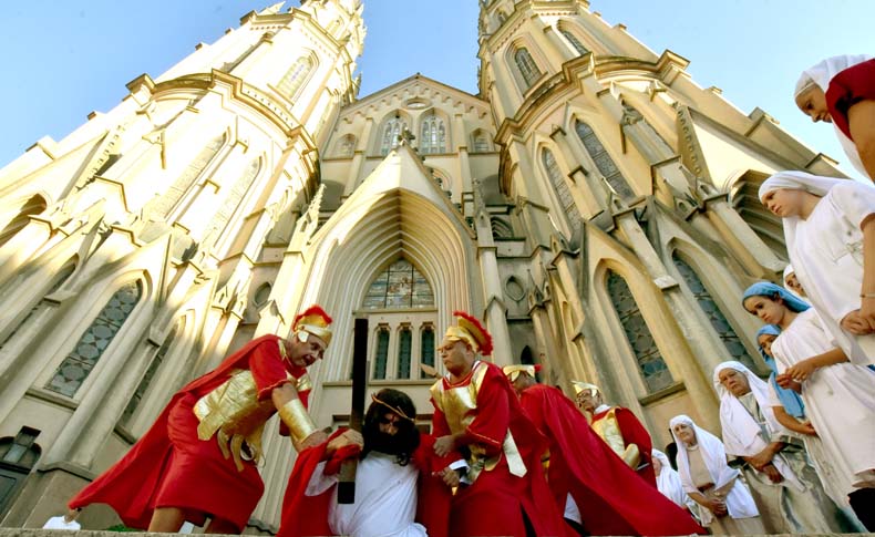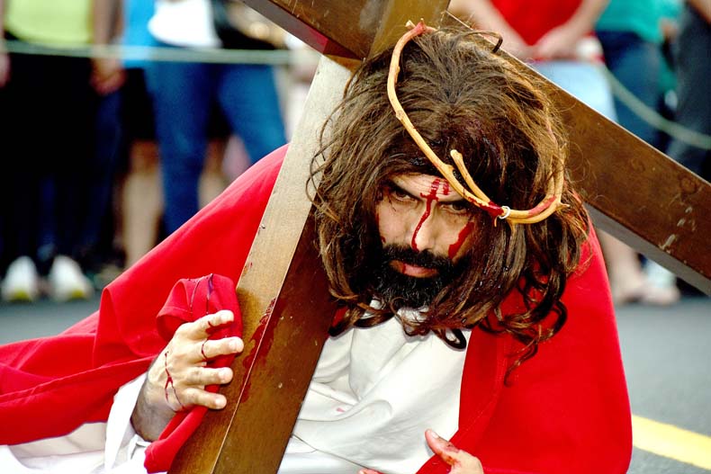 O papel de Jesus Cristo foi feito pelo taxista André Luís Marques, de 43 anos. Há pelo menos meia década ele usa as vestes de Cristo e carrega a cruz, reencenando momentos marcantes do Novo Testamento. “É uma caminhada de muita emoção. E não há emoção maior do que estar representando Jesus.”