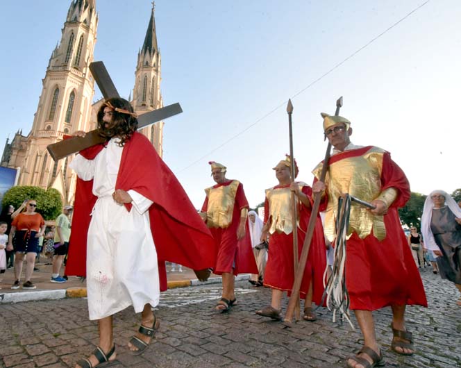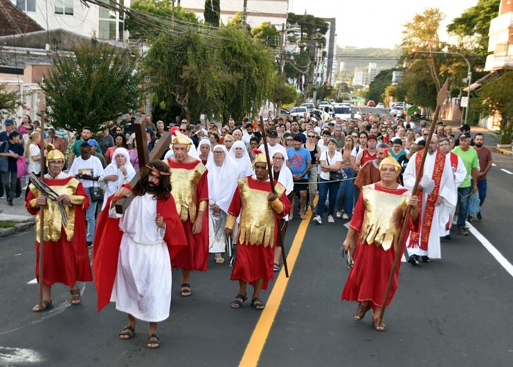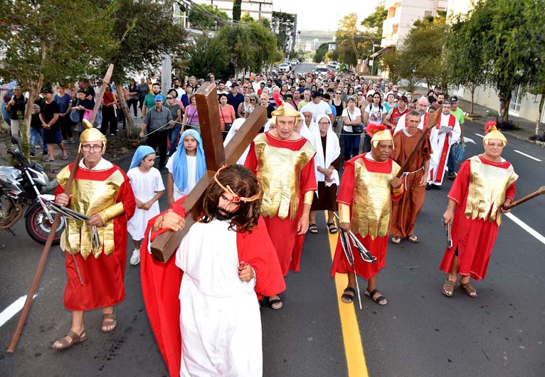 Devotos reuniram-se na tarde desta sexta-feira, 18, em frente à Catedral São João Batista para o início da 15ª Caminhada da Paixão de Cristo de Santa Cruz do Sul. Para provar a fé, percorreram um trajeto de 4,5 quilômetros até o Parque da Cruz, em Monte Verde.