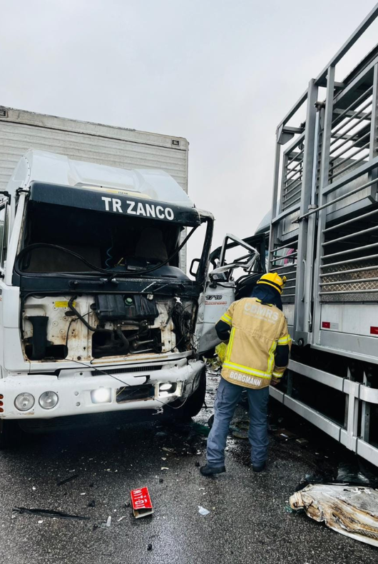 Um grave acidente de trânsito foi registrado no início da manhã desta segunda-feira, 2, na RSC-471, em Encruzilhada do Sul. O fato ocorreu pouco antes das 7 horas, na altura do quilômetro 219. Dois caminhões, com placas de Gravataí e Jupiá (SC), colidiram frontalmente.