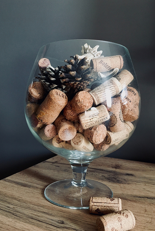 Ainda na linha das bebidas, dá para incorporar as rolhas dos vinhos à decoração, por exemplo.