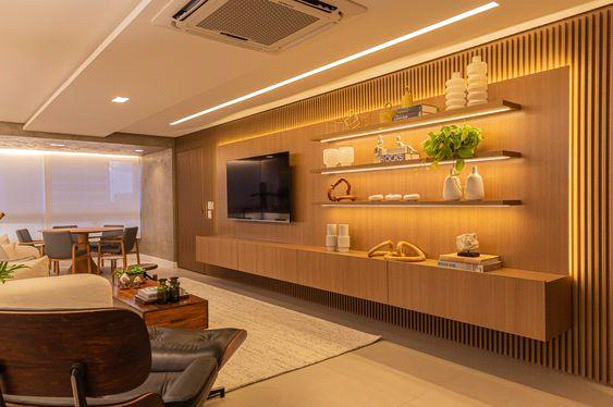 Um bom rack costuma ter uma boa iluminação. Tons de madeira vão super bem com uma luz mais amarelada. Já tons mais claros ou escuros, conseguem dividir os focos de luz entre o branco e amarelo. Então confira qual o melhor baseado em todos esses fatores.