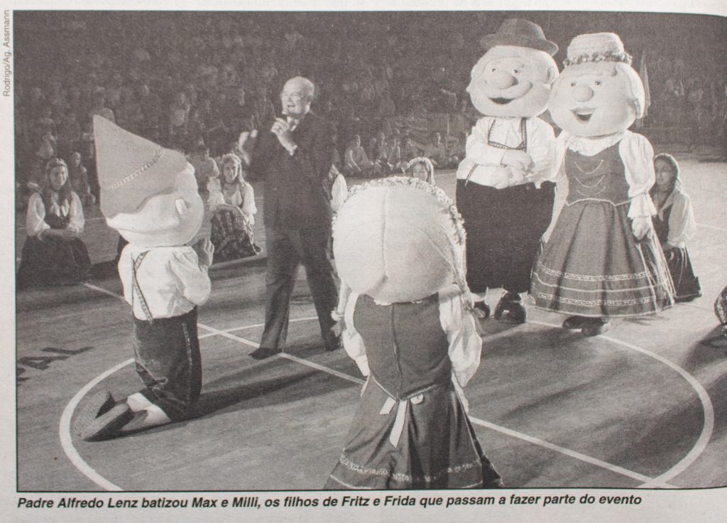A Gazeta do Sul de 2 de outubro de 2003 conta, em uma reportagem, que na noite do dia 1º de outubro daquele ano aconteceu o batismo de Max e Milli na festa de abertura da 19ª Oktoberfest. Os nomes foram dados pela santa-cruzense Ilse O’Meagher. Naquela noite, o batismo foi realizado pelo padre Alfredo Lenz e a solenidade foi prestigiada pelo então ministro do Turismo Walfrido Mares Guia, que representava o presidente da República, Luís Inácio Lula da Silva.