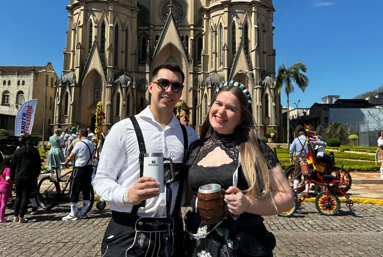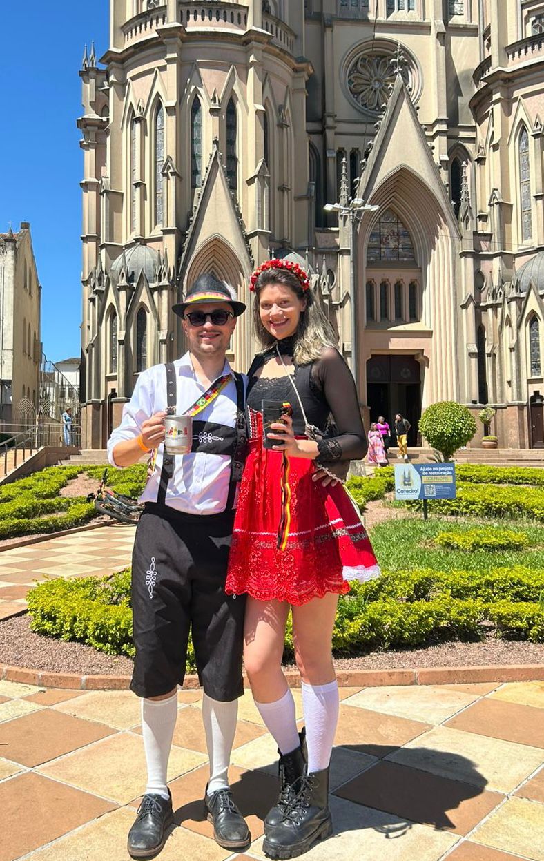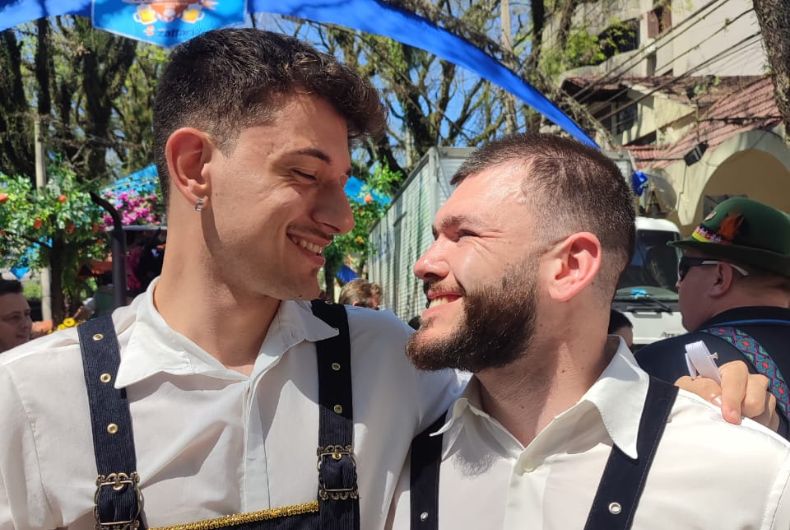 O casal se conheceu nas redes sociais há cerca de três anos, mas perderam o contato ao longo do tempo. O reencontro foi inusitado: Rodrigo quebrou a perna em um acidente, e João acompanhou a cirurgia enquanto estagiário da saúde. Por morarem em cidades diferentes, o primeiro encontro demorou para acontecer e depois, seguiram se falando constantemente. “Eu queria que fosse um marco, para mostrar que também temos espaço na Festa da Alegria e que o povo alemão está de braços abertos para todo tipo de amor. Foi um dia mágico para nós”, completou Rodrigo.