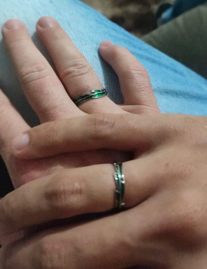 O casal já tinha realizado um ato simbólico de namoro. Rodrigo envolveu no dedo do companheiro uma folha em forma de anel, para remeter ao Orixá das plantas Ossain, o qual ele se identifica como filho. Mas, as brincadeiras continuaram: “Ele perguntava onde estava o anel, então, pensei que deveria fazer algo para marcar o momento, um pedido oficial”, disse Rodrigo.