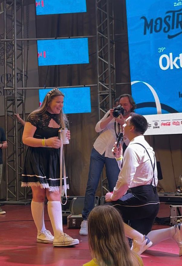 Desde agosto, Augustho já sabia que amigos e familiares de ambos eram presença confirmada na Oktoberfest, por isso, o local era ideal, ele só não contava em realizar o pedido no palco. “Na sexta-feira, eu fui apresentado ao Luciano Menezes, alinhamos tudo, eu pensei em fazer no chão mesmo, algo mais discreto. Chegando lá, Menezes me incentivou a subir no palco. Estava com vergonha da multidão, mas receber o ‘sim’ foi sensacional, nunca imaginei que seria tão especial”, diz Augustho.