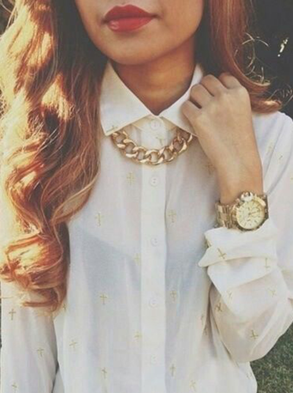 Nesse caso, opte por fechar todos os botões e acrescente um colar imponente, que se torne o ponto focal do look.