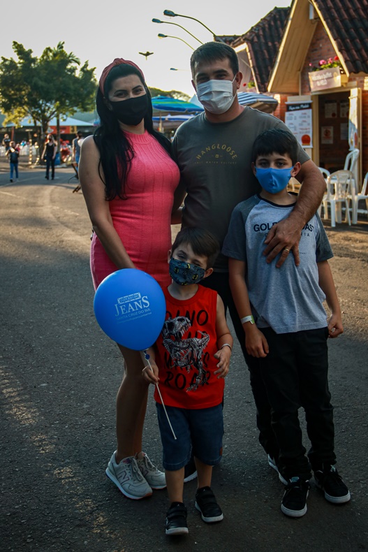 Régis Ortiz Marques, de 38 anos e Gabriele Carvalho, de 30, visitaram o Parque da Oktoberfest neste Dia das Crianças junto dos pequenos Gustavo Antônio Marques, de 9 anos, e Matheus Marques, de 5. O feriado foi bem aproveitado pela família no evento. “Foi bem legal, a gente foi comer, eu gostei”, contou o irmão mais velho. “Eu comi batata frita e algodão doce”, disse o caçula Matheus. “A gente não tinha vindo antes, viemos para conhecer, ver como está esse ano e como está funcionando. Mas está bom, bem tranquilo para andar, comer”, frisou Gabriele.