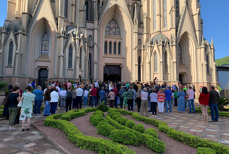 A Catedral São João Batista realizou na manhã deste domingo, 2, a celebração do Domingo de Ramos. A cerimônia iniciou pontualmente às 9 horas com bênção dos ramos seguida da procissão para dentro da igreja. Após, houve missa celebrada pelo bispo Dom Aloísio Alberto Dilli. O Domingo de Ramos marca o início da programação especial da Semana Santa, que inclui celebrações na quarta-feira, 5, quinta-feira santa 6, sexta-feira da Paixão, 7, sábado de Aleluia, 8, e domingo de Páscoa, 9.