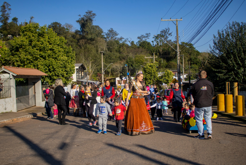 A rainha da Oktoberfest do ano passado, Camila Eduarda Schaefer, atuou como atendente na Emei em 2023 e foi cedida pela escola onde trabalha atualmente para participar das atividades nessa quarta-feira. A diretora explica que muitas famílias das crianças nunca estiveram em uma festa germânica e nem são de origem alemã. Por isso, os filhos também não são obrigados a integrar de forma efetiva as atividades, como o passeio ou o baile típico, mas são convidados, sempre respeitando as suas vontades.