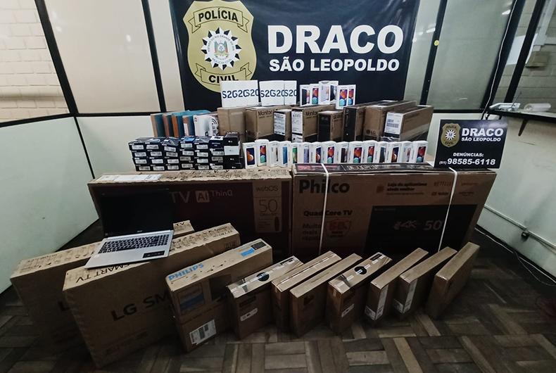 Nessa quinta-feira, 28, os investigadores da Draco São Leopoldo localizaram 60 celulares, 14 televisores e monitores e 11 notebooks em um depósito secreto que empresário mantinha, dentro de um imóvel do Bairro Bom Jesus. Conforme o delegado Ayrton Figueiredo Martins Júnior, o jovem, que já havia sido preso na segunda-feira, sendo liberado na terça, foi preso novamente por receptação qualificada. A qualificadora – dispositivo que pode ampliar a pena – foi o fato de o investigado ter adquirido produtos com origem de crime no exercício de atividade comercial.