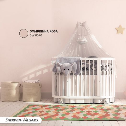 - Um cuidado especial deve ser dedicado pelos pais na escolha de como ficará o quarto dos filhos. A criança passa o dia em atividade, corre, brinca, extravasa. Quando chega o momento de descansar, merece um espaço confortável. A Sherwin-Williams, por exemplo, sugere a adoção de tons neutros, que trazem uma sensação de aconchego e harmonia. Além disso, dão a sensação de amplitude ao ambiente. Na foto, a indicação é a “sombrinha rosa”.