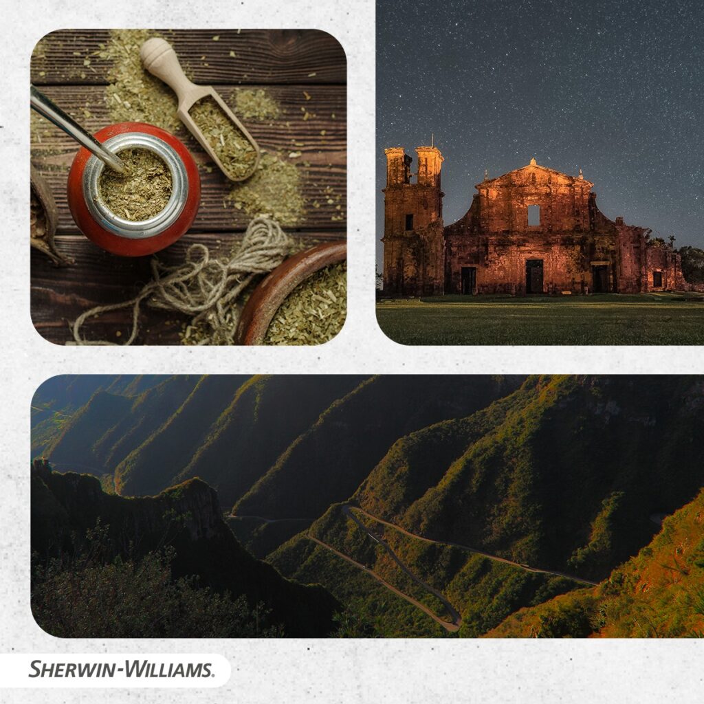 - Uma homenagem à Região Sul do Brasil foi feita pelo designer brasileiro Pedro Franco, a pedido da Sherwin-Williams. Ele criou a linha Minuano Collection. As referências são a arquitetura sulista, o verde abundante da Serra do Rio do Rastro e até mesmo as icônicas vestimentas da revolucionária Anita Garibaldi. A elaboração das cores é baseada em estudos antropológicos, iconográficos e elementos da fauna e flora locais. Na imagem, a paleta de cores que integram a coleção.