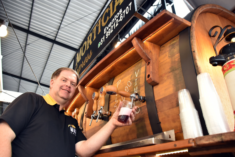 O casal, que participa regularmente de eventos no Parque do Chimarrão, não escondia a expectativa pelos voos de balão e, a exemplo dos organizadores, estava na expectativa pelo cessar da chuva. O mesmo se via entre os expositores. Junto à praça de alimentação, o proprietário da Morticia Express – empresa que faz a locação de tanques para choperias e cervejarias –, Fernando Wachholtz, de Santa Clara do Sul, esperava pelo aumento do volume de vendas a partir da melhora no tempo. Representando a cervejaria Max Haus, de Venâncio Aires, ele disse que a expectativa inicial é de vender pelo menos 2 mil litros de chope durante o evento. Dentre os três tipos oferecidos, o destaque foi o chope de vinho, com sabor mais adocicado, e igualmente preparado de forma artesanal.