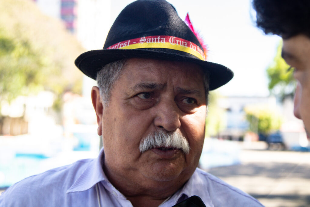 “Nós temos o grupo há 38 anos, que chama “A vida é pra ser feliz”, fizemos muitas viagens à festas no Rio Grande do Sul com Oktoberfest, Fenadoce, enfim, viajamos bastante em bailes e encontro de idosos”, diz Idalino, que aproveitava a música da bandinha itinerante para ensair os passos de dança que depois seriam vistos no baile do Pavilhão Central da Oktober. “Me sinto um guri”, dizia ele, com um largo sorriso no rosto.