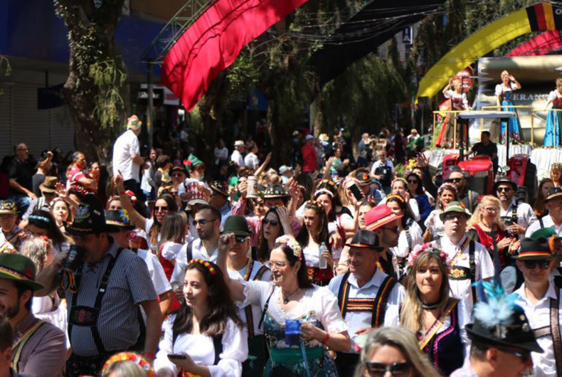 Quem foi até a Marechal Floriano, na manhã deste domingo, 23, pode se encantar com um espetáculo de cores, música, cultura e muita alegria. O último desfile temático da 37ª Oktoberfest iniciou às 10h15, na esquina com a Rua Ramiro Barcelos e terminou dentro do parque, levando uma multidão às ruas. A organização estima que cerca de 50 mil pessoas tenham prestigiado a parada.