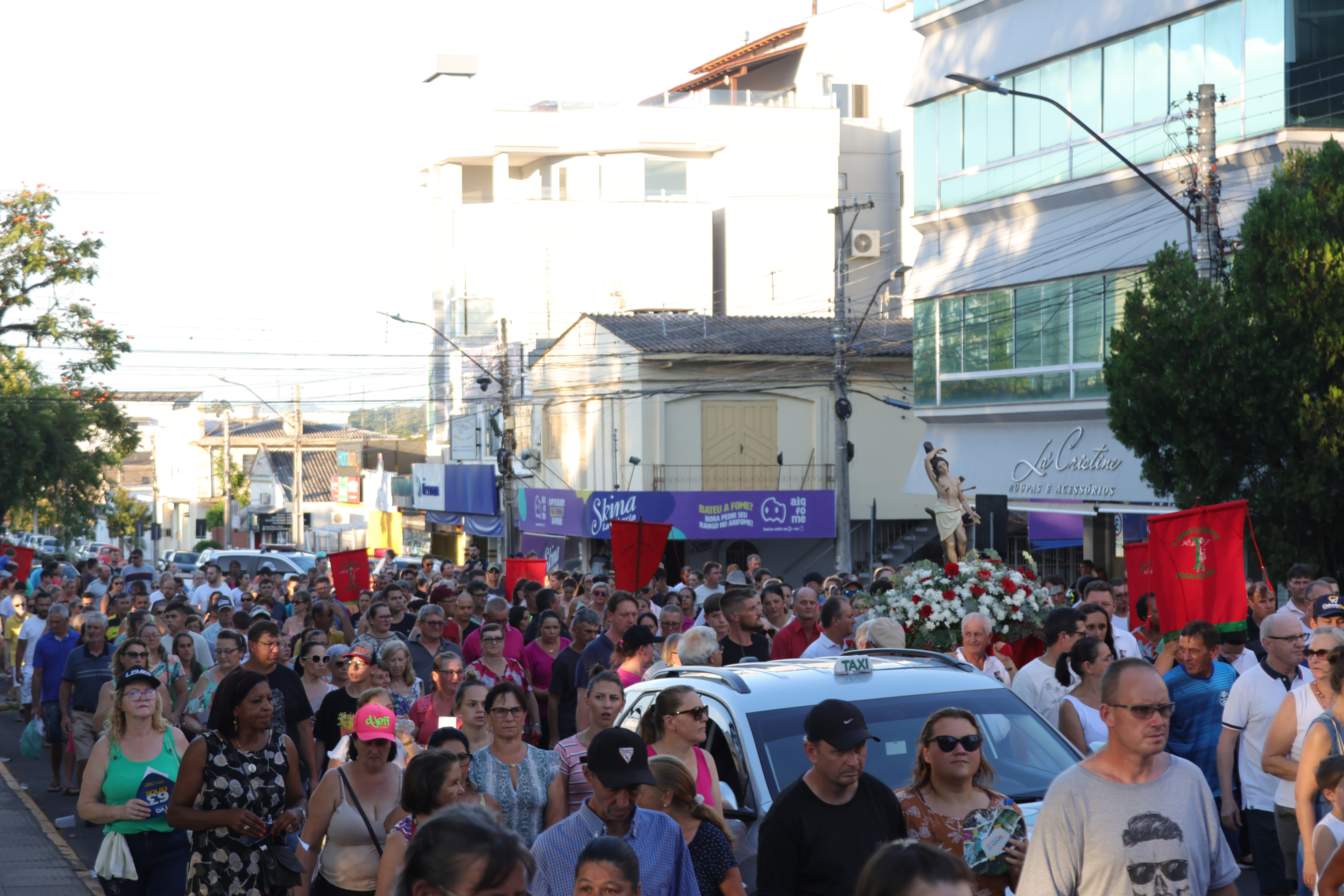 Os termômetros nas alturas não afugentaram os devotos de São Sebastião Mártir. Eles acumularam-se ao lado da Igreja Matriz, no Centro de Venâncio Aires, na tarde desse domingo, 22, para acompanhar a missa campal seguida de procissão. A celebração é o ápice da programação do evento, que chegou à sua 147ª edição, envolvendo a comunidade e atraindo grande público.