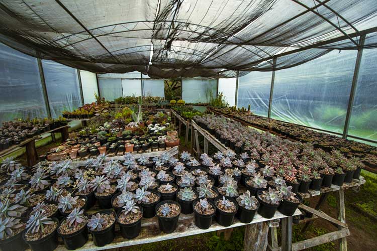 Por ter percorrido o mundo todo, Lutzenberger trouxe espécies de várias partes da Terra. Um passeio em meio às construções descortina o caminho com Papyrus, originais do Egito, plantas carnívoras, nas estufas que recriam o clima de deserto, com suculentas de todos os tipos, ao lado do capim santa-fé, que também serve de telhado no Rincão.
