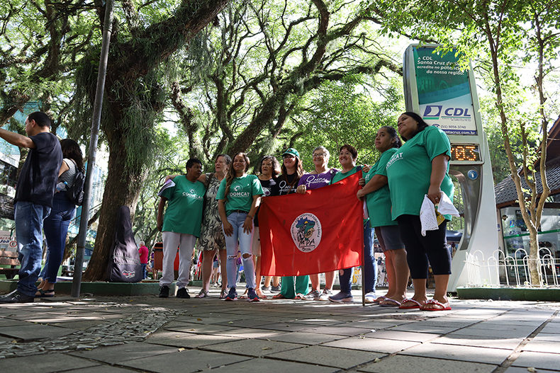 Estiveram presentes também representantes da Cooperativa dos Catadores e Recicladores de Santa Cruz do Sul (Coomcat). Elas pediram mais apoio da Prefeitura e voltaram a pedir pela renovação do contrato de prestação de serviço entre a entidade e o Município para a execução da coleta seletiva solidária. Após os discursos, por volta das 10 horas, o grupo saiu em caminhada pela Rua Marechal Floriano. Agentes da Guarda Municipal acompanharam a movimentação e fizeram o balizamento do trânsito para garantir a segurança de todos.