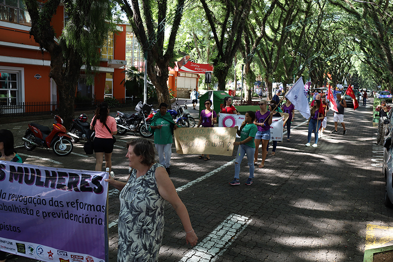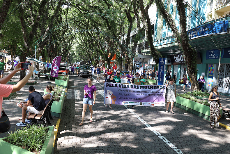 Um ato em defesa dos direitos das mulheres foi realizado na manhã deste sábado, 11, na Praça Getúlio Vargas, em Santa Cruz do Sul. A manifestação ocorre ainda no âmbito da programação do Dia Internacional da Mulher, ocorrido na última quarta-feira, dia 8. As principais reivindicações, além do respeito às mulheres e seus direitos, são a revogação das leis que instituíram as reformas trabalhista e previdenciária, bem como a investigação e punição das pessoas que participaram da invasão à Praça dos Três Poderes, em Brasília, no dia 8 de janeiro.