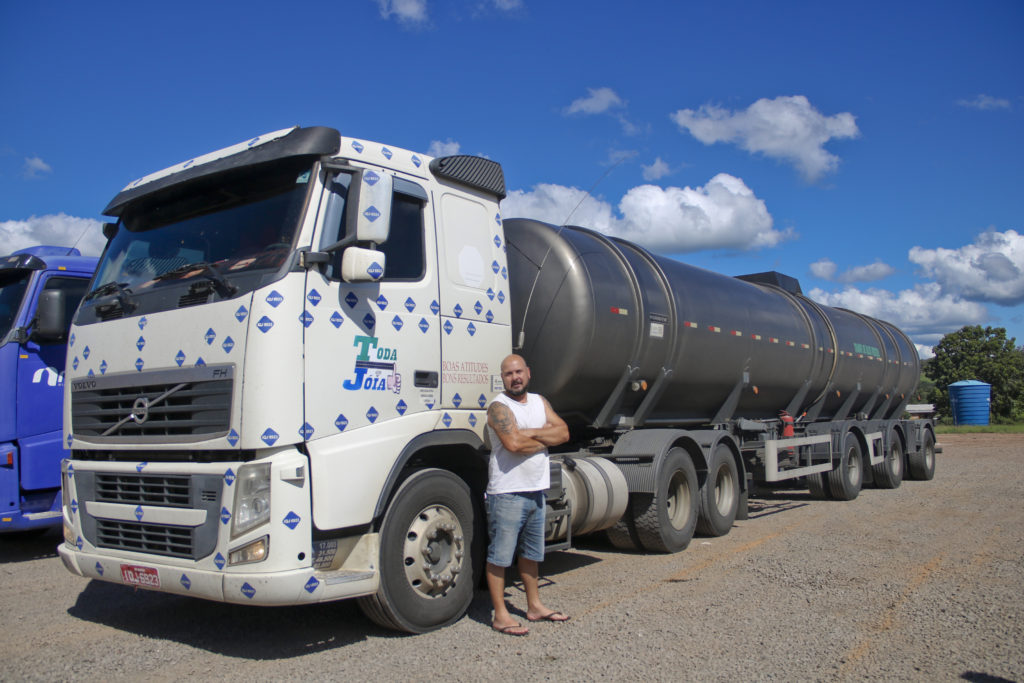 O caminhoneiro Dilamar da Silva é de Passo Fundo e, pelo menos três vezes por semana, cruza a 153 de Norte a Sul transportando óleo vegetal. Sai com seu veículo vazio e carrega, em Rio Grande, 37 toneladas de óleo – que fazem com que o conjunto do caminhão e carga chegue a pesar 53 toneladas. “A viagem de ida leva umas oito horas, já a volta dura em torno de 12 horas. Não dá para andar rápido com o caminhão cheio.”