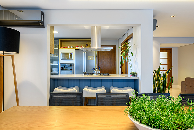 Há alguns anos, principalmente nos apartamentos, a cozinha era uma parte isolada e se integrava apenas com a área de serviço. Mas, aos poucos, esse conceito foi se transformando e, atualmente, com a crescente procura por cozinhas americanas e com ilhas, ela passou a ser integrada também com as salas de jantar e de estar, a varanda e até com as áreas externas.