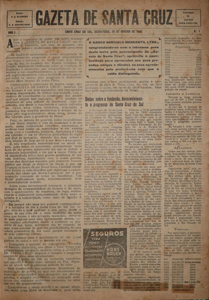 Poucos dias antes do lançamento do jornal, em 17 de janeiro de 1945, o advogado Rolph Bartholomay, que havia sido escolhido para ser o redator, precisou ir às pressas até Porto Alegre para cuidar da parte burocrática, que era indispensável. Na época, havia uma linha aérea operada pela extinta Varig, que duas vezes por semana vinha de Cruz Alta, fazia escala em Santa Cruz e seguia para a Capital. Ele então embarcou e foi em busca da inscrição, que foi efetivada em poucas horas. Isso permitiu a veiculação da primeira edição, que deveria ser toda em português, pois a guerra continuava.