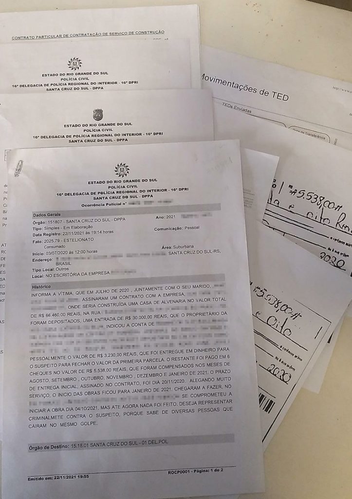 O golpe da casa própria, que consiste em vender imóveis, cobrar adiantado e não entregar a obra, está fazendo vítimas em Santa Cruz do Sul. Embora existam empresas sérias nesse ramo da construção civil no município, a Polícia Civil vem investigando, ao longo dos últimos meses, a conduta de uma construtora em específico, da Zona Sul da cidade, que é suspeita de aplicar golpes em clientes.