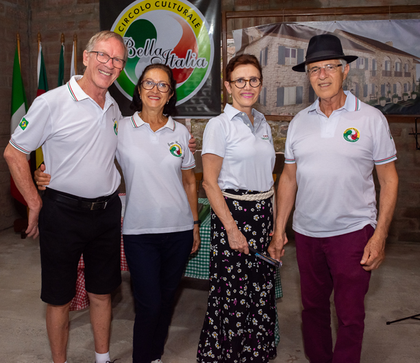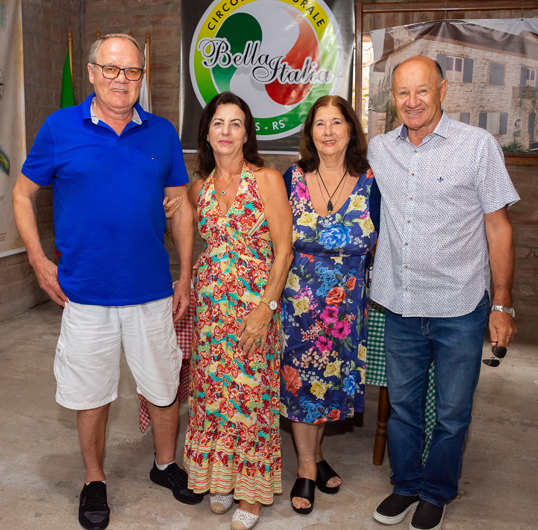 Um descontraído filó no anoitecer da terça-feira, 20, marcou a posse da nova diretoria do Circolo Culturale Bella Italia de Santa Cruz do Sul, com a liderança do presidente reeleito Marcelino Seolin e da vice-presidente Silvia Possenatto Nardi. O filó, que teve comes, bebes e cantos, foi realizado na futura sede do Circolo, nos altos da Marechal Deodoro. Na ocasião foram saudados os novos associados, Jocely e Darci Klein, e entregue os diplomas aos concluintes do curso de língua e cultura italiana.