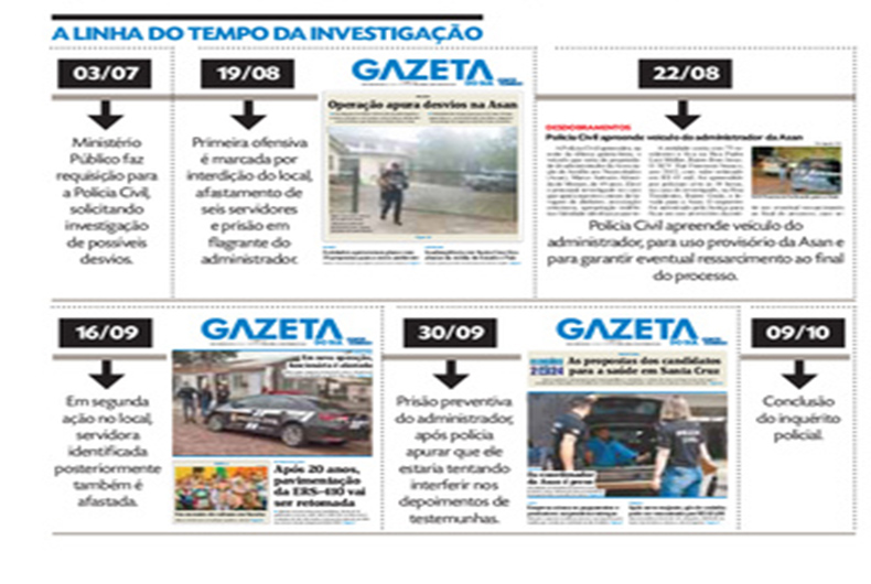 Após análise nos materiais e mídias apreendidas na primeira ofensiva, a Polícia Civil e uma oficial de Justiça cumpriram nova ação na Asan, em 17 de setembro, desta vez para afastar mais uma servidora envolvida no esquema. A derradeira operação aconteceu no dia 30 de setembro, quando Marco Antonio Almeida de Moraes foi preso preventivamente.
