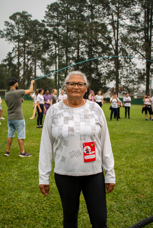 O movimento também era intenso na gincana das equipes. No campo onde os jogos eram realizados, Florentina Silveira da Rosa, de 69 anos, observava a movimentação dos competidores. Participando pela terceira vez, a moradora do Bairro Mãe de Deus mostrava-se animada. Florentina esteve no evento a partir de convite da equipe do Caps II, que frequentou durante seu tratamento, mas hoje já garantiu alta.