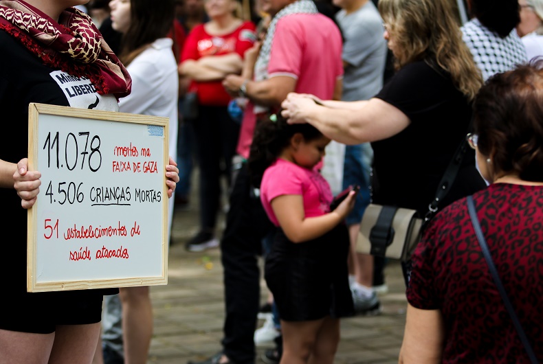 A iniciativa é do Fórum Democrático das Classes Trabalhadoras de Santa Cruz do Sul e do Comitê em Defesa do Povo Palestino. “Defendemos, aqui, o respeito à demarcação do território, o respeito à vida e queremos paz”, diz João Carlos Heissler, integrante do Fórum. Ele ressalta a quantidade de mortos, que já passa de 11 mil, em especial os casos de crianças.