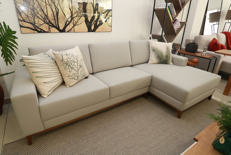 Outro ponto muito importante é analisar qual é o objetivo daquele estofado. “Um sofá para receber visitas não vai ser um sofá mole, nem retrátil, para esticar as pernas, por exemplo, porque a visita não vai fazer isso. Por isso, um sofá retrátil ou com chaise (que é uma extensão do assento) normalmente é usado em salas de TV. Conforto total”, comenta Marinice. Considerar o tamanho do cômodo também é essencial, já que influencia na escolha do modelo e das próprias medidas do estofado.