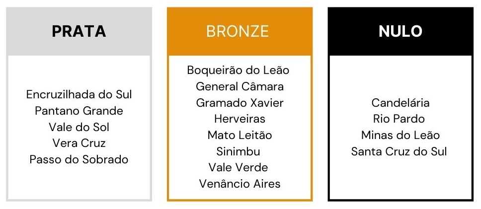 Apesar de nenhuma cidade receber o Selo Ouro, referente à cidades que tiveram as três categorias, baby, dente de leite e teens, com cobertura vacinal atingida, o Vale do Rio Pardo e Região Centro-Serra tiveram destaque nas outras categorias. Encruzilhada do Sul, Pantano Grande, Vale do Sol, Vera Cruz e Passo do Sobrado receberam o Selo Prata, referente à cobertura vacinal em duas categorias. Confira a lista completa da participação das cidades da região: