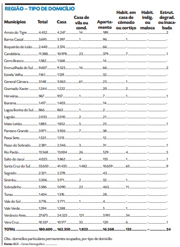 LEIA TAMBÉM: Vale do Rio Pardo tem mais de 37 mil domicílios não ocupados; veja dados por município